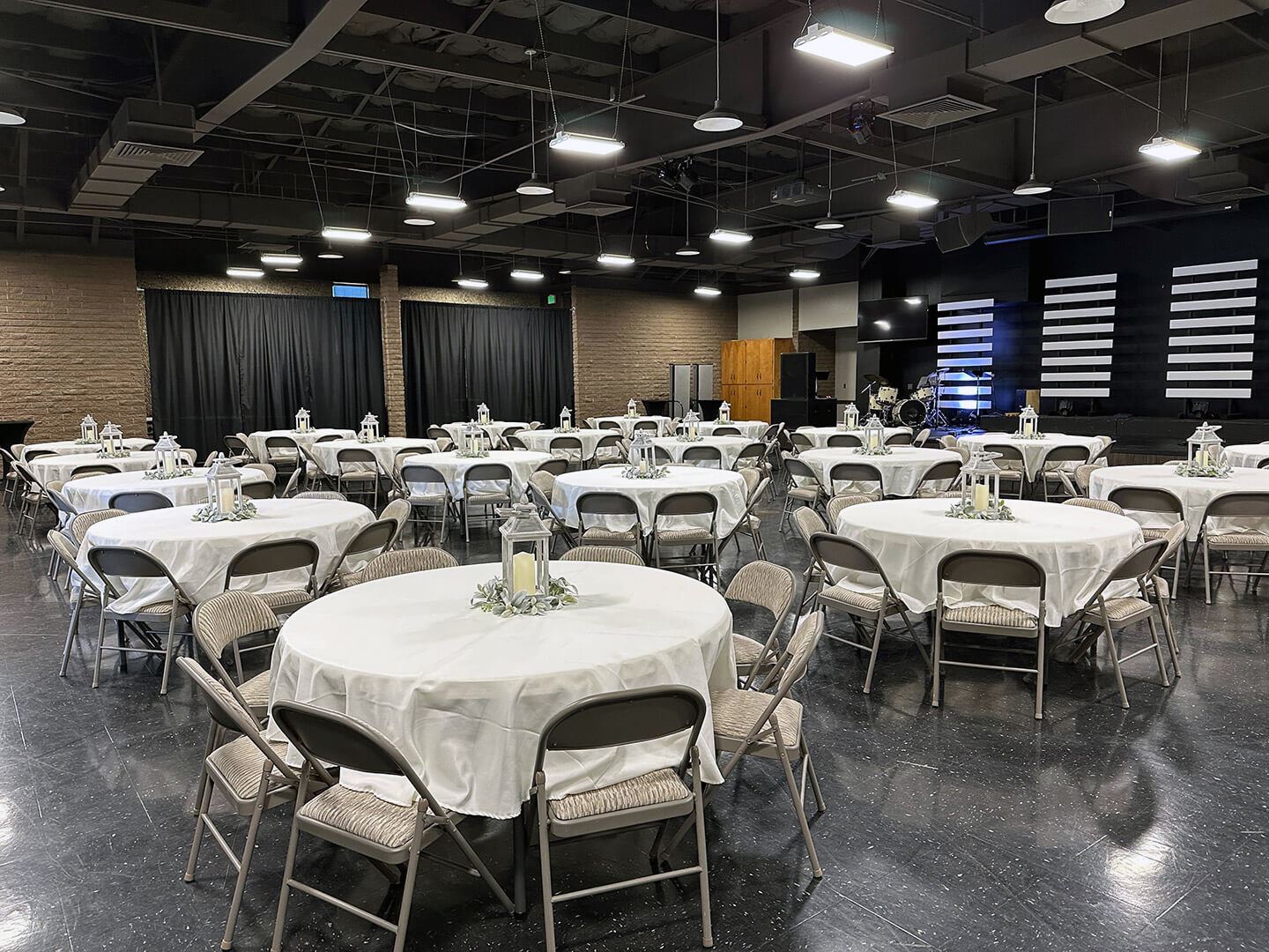 - Fellowship Hall can seat up to 200 on round and rectangle tables for the reception